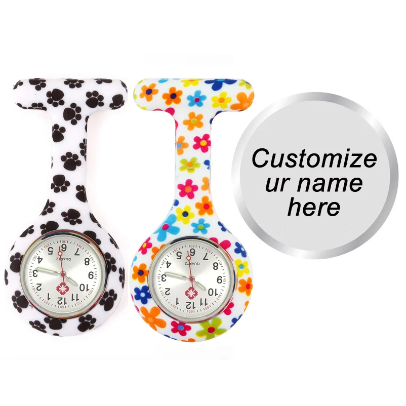 Relojes de bolsillo y colgantesTasa de descuento Broche personalizado grabado con tu nombre, Pin Count 15, medidor de pulso, Dial Fob, pata de perro, reloj de silicona para enfermera jaOARry9